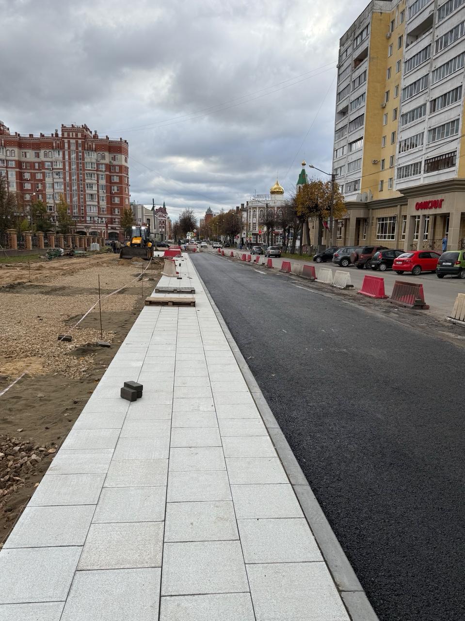 На проезжей части уже завершено устройство нового асфальтобетонного покрытия, нанесена свежая дорожная разметка. Эти меры позволят улучшить безопасность движения и визуально обновят центральную часть города.