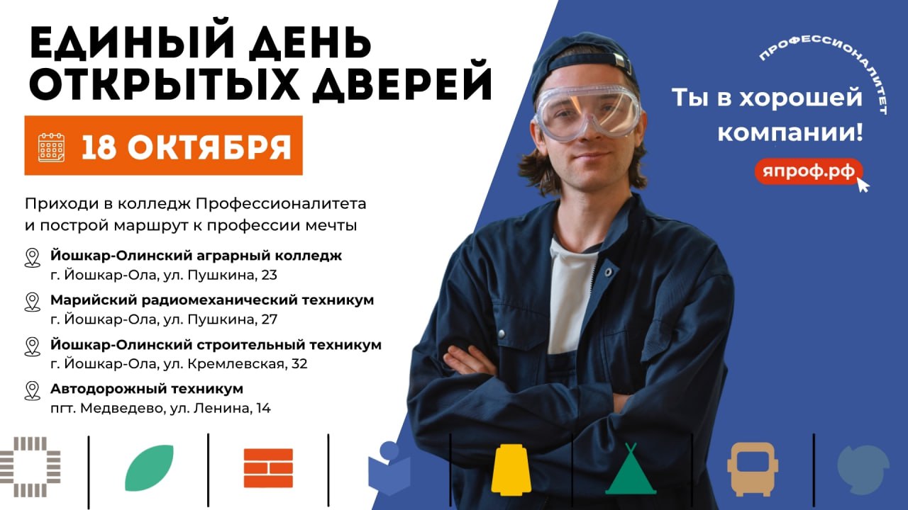 18 октября 2025 года в Республике Марий Эл состоится масштабное событие — Единый день открытых дверей федерального проекта «Профессионалитет».