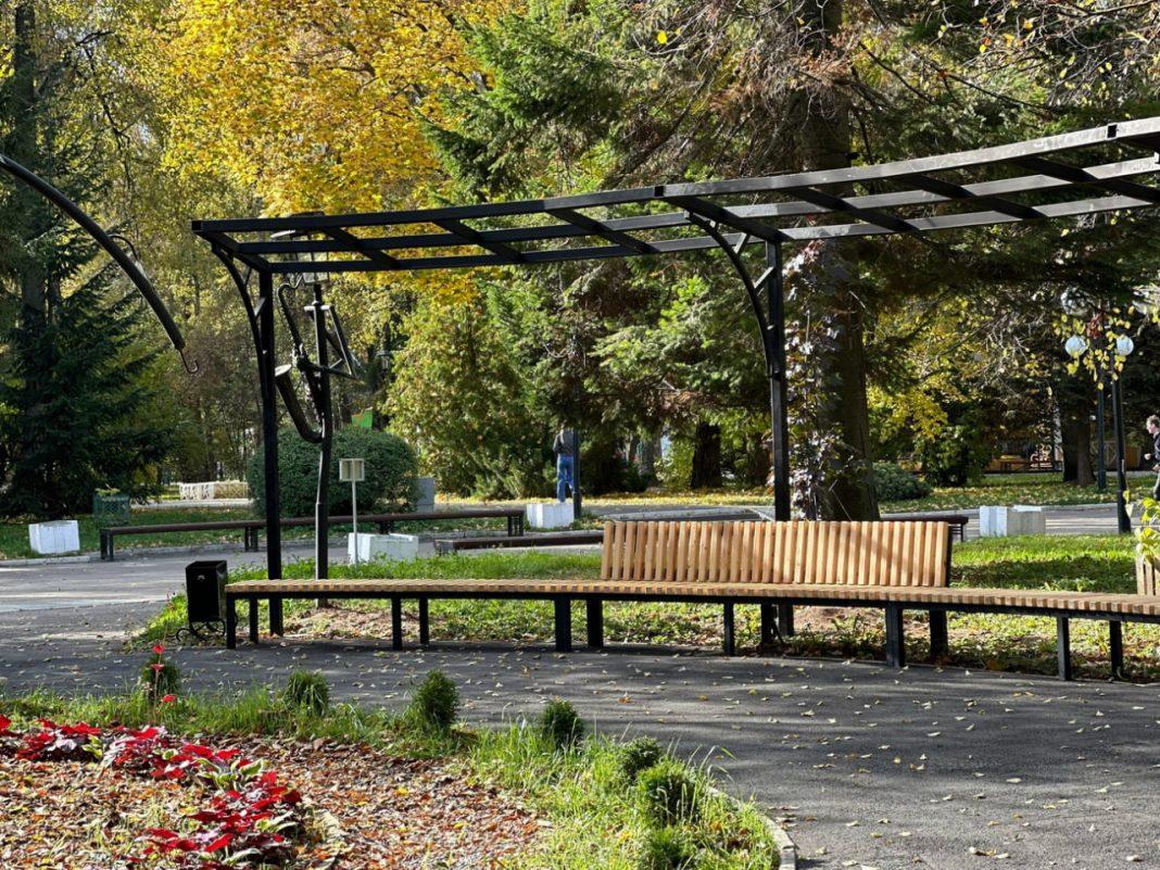 Этим летом сразу на нескольких участках парка шли работы. Благодаря реализации национального проекта «Инфраструктура для жизни» построен туалет. Проложены новые тротуары со скамьями и современным освещением. Появились урны, малые архитектурные формы.