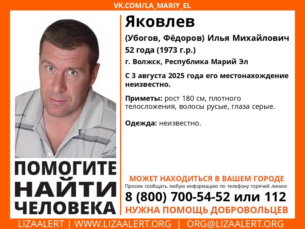 Пропал #Яковлев (Убогов, Фёдоров) Илья Михайлович, 52 года, г. Волжск, Республика Марий Эл