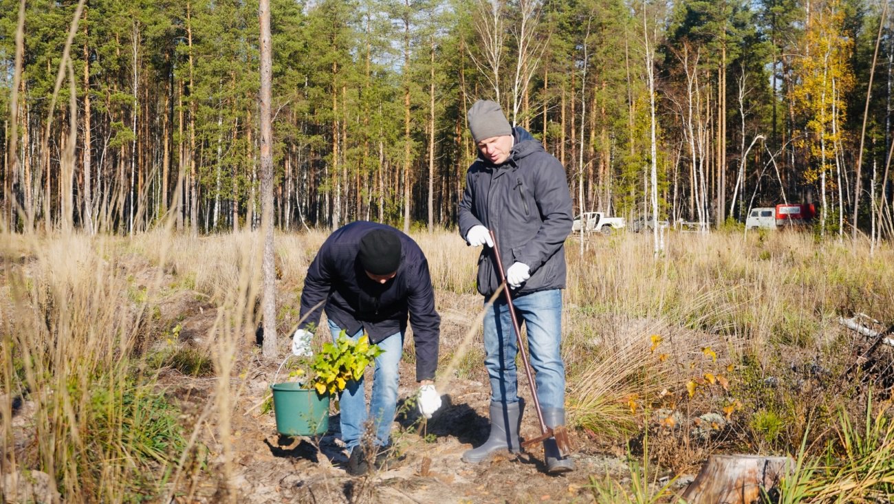 Сергей Мухортов вместе героем СВО присоединились к посадке леса в Моркинском районе