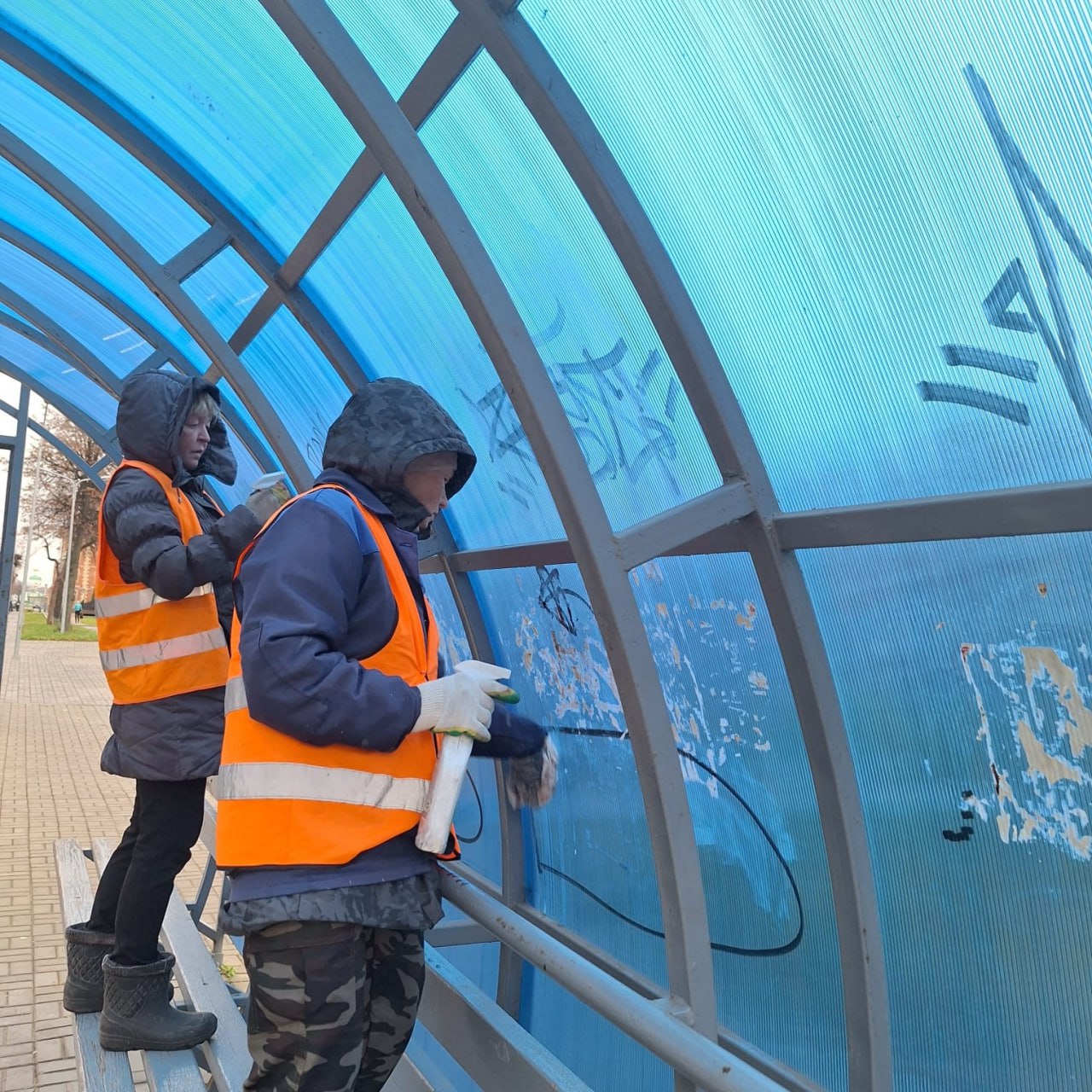 Но и это не всё! Помимо борьбы с природой, сегодня пришлось устранять последствия вандализма. Казалось бы, все понимают, что значит беречь городское имущество, но, к сожалению, находятся те самые «золотые руки», которые считают иначе. Потрачено немало времени и сил, чтобы оттереть краску и привести всё в порядок.