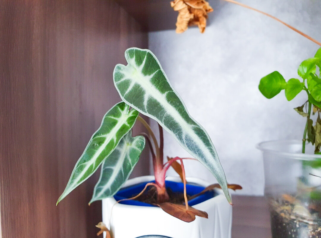 Если возможности для полноценной пересадки в подходящий грунт нет, можно воспользоваться временным методом, который отлично подходит даже для капризных растений, таких как алоказии. Для этого используют мох-сфагнум. Высокие пластиковые стаканы, где можно создать оптимальные условия для роста, становятся хорошей заменой традиционным горшкам.