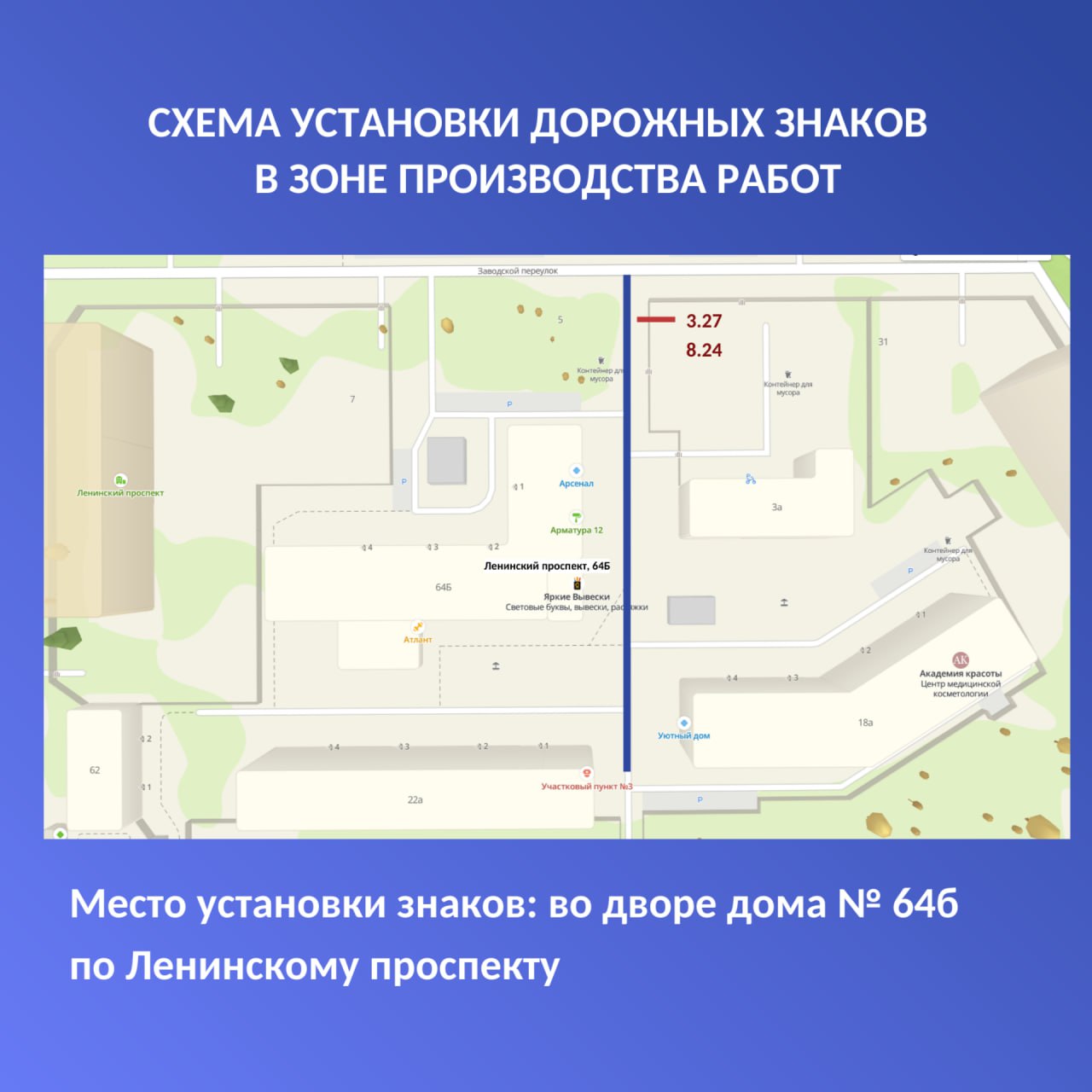 Во дворе дома № 64 «Б» по Ленинскому проспекту установят дорожный знак 3.27 «Остановка запрещена» со знаками дополнительной информации (табличками) 8.24 «Работает эвакуатор».