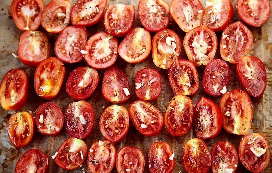 Главный секрет – сушка на металлической решетке, что позволяет равномерно циркулировать горячему воздуху, сохраняя при этом сладость и предотвращая излишнюю варку. Посыпьте томаты солью и оставьте для отвода жидкости на 20 минут. Затем выложите их на решетку и отправьте в заранее разогретую духовку.