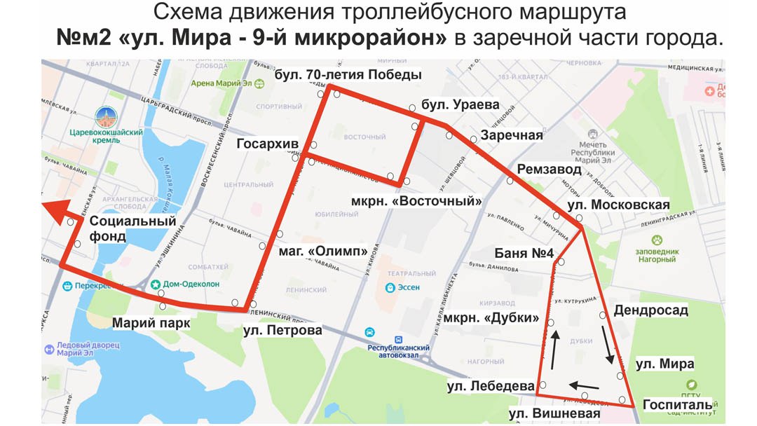 В Йошкар-Оле изменится маршрут троллейбуса №м2