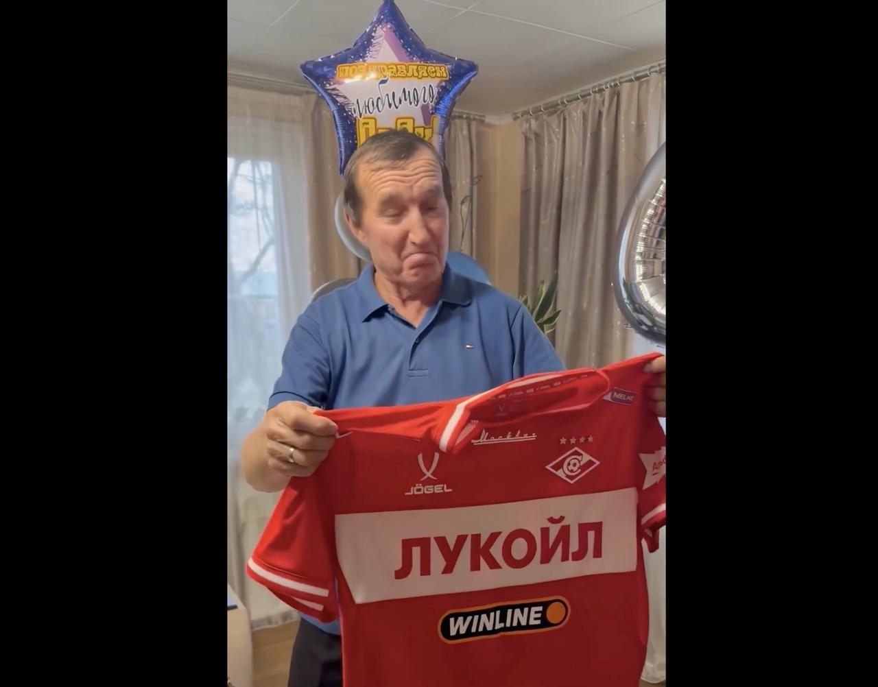 Футболисты откликнулись. Они подготовили для Владимира Анатольевича персональное поздравление. Подарок включал в себя видеообращение от легендарного спартаковца Егора Титова, а также игровую футболку из нынешнего состава команды – Наиля Умярова, одного из любимых современных игроков юбиляра.