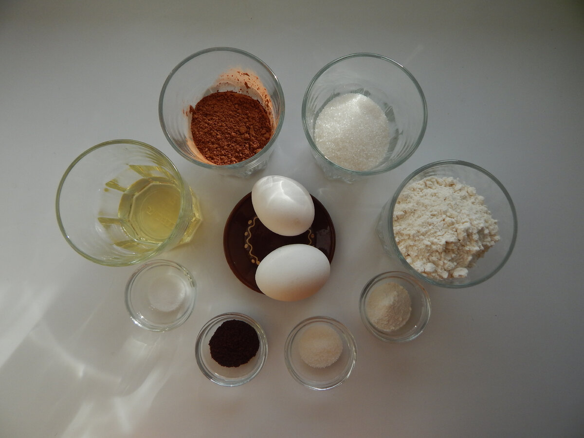 Перед началом готовки стоит подготовить тесто. В глубокой миске смешать сахар, какао, кофе и ванильный сахар с растительным маслом, перемешивая до однородной консистенции. Вбивать яйца по одному, каждый раз взбивая в течение минуты после добавления. Затем соединить муку с разрыхлителем, просеять и добавить к шоколадной смеси. Важно не мешать слишком долго — достаточно, чтобы все ингредиенты хорошо объединились.