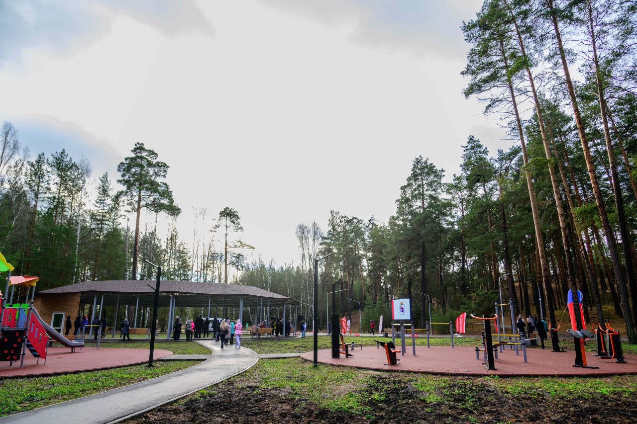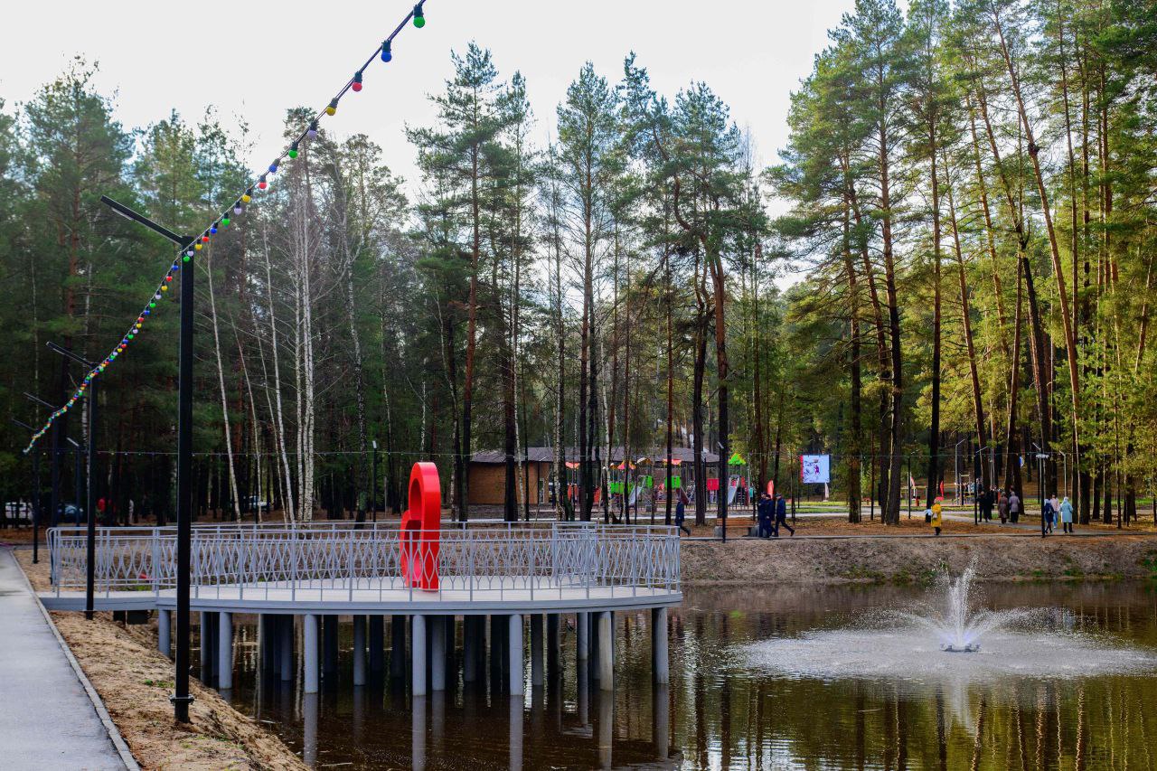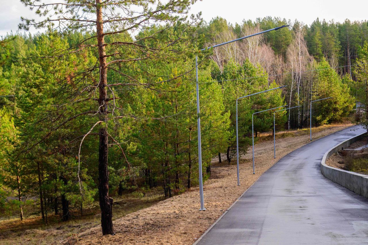 В ходе работ благоустроена территория лесного массива общей площадью 2,7 гектара, облагорожен близлежащий водоем, обустроен освещаемый тротуар, установлен пирс с арт-объектом. Создана «Лесная площадка», где размещен амфитеатр с чайным павильоном, детское пространство, столы для пикников и монитор для демонстрации соревнований.