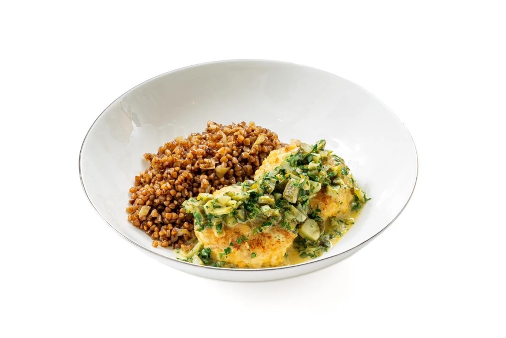 Начать с подготовки всех ингредиентов и разогрева духовки до 180 градусов.Белый хлеб залить минеральной водой и отложить в сторону для размокания.На терке натереть морковь и добавить её в куриный фарш, приправить солью и отжатым хлебом. Тщательно перемешать.Лук мелко нарезать и обжарить на смеси растительного и сливочного масла до золотистого цвета.Сформовать мясные котлеты из фарша, обвалять их в муке и обжарить до румяной корочки.Гречку слегка обжарить с луком в сотейнике, затем залить бульоном, довести до кипения, накрыть крышкой и отправить в духовку на 10 минут.Котлеты выложить в сотейник к гречке и вернуть в духовку на ещё 10 минут.Подготовить заправку, мелко нарезав маринованные огурцы и петрушку, смешать с огуречным рассолом и горчицей.Котлеты с гречкой сервировать на тарелке, полив ароматным соусом из огурцов.Это гастрономическое блюдо не только порадует вкусом, но и сделает ваш стол по-настоящему королевским!
