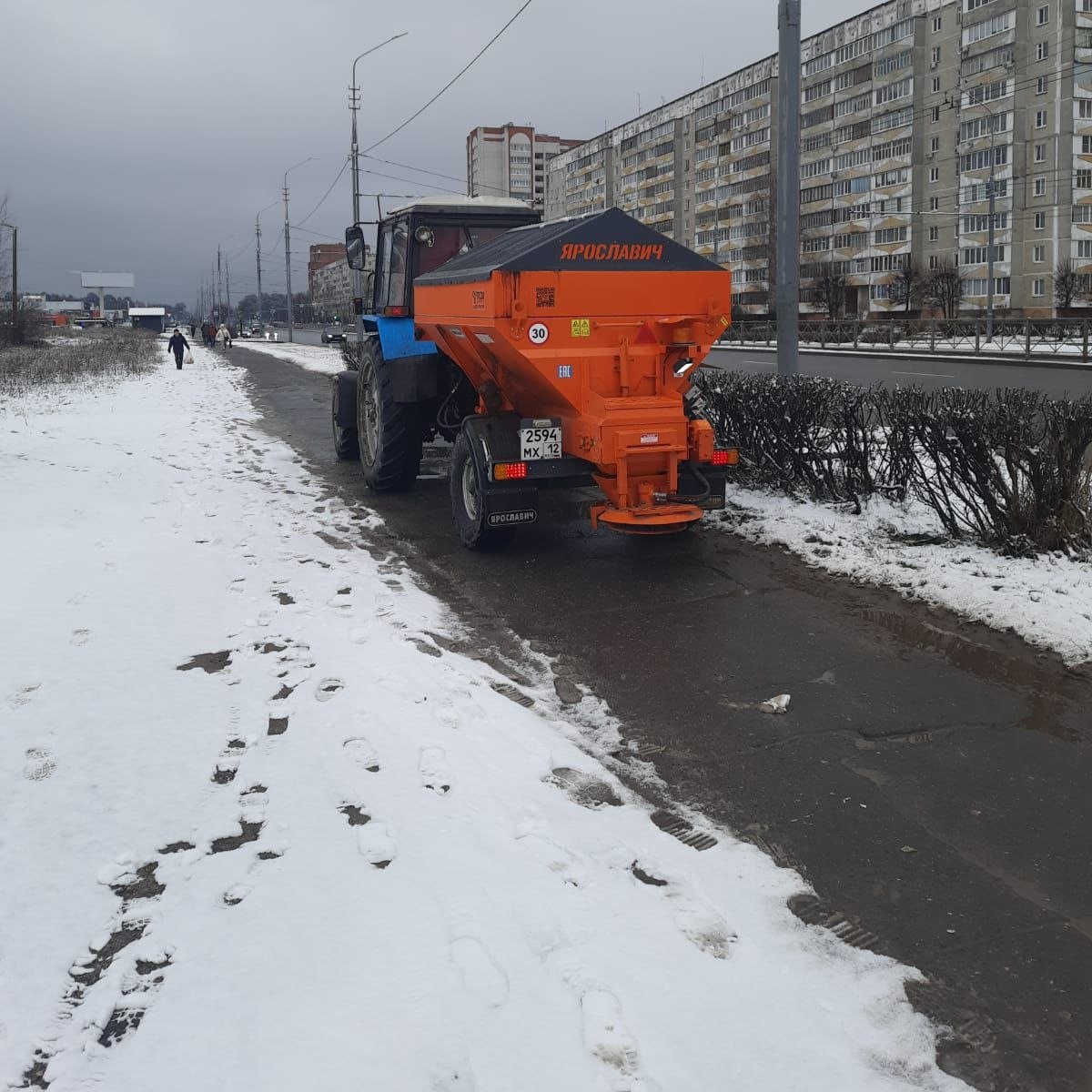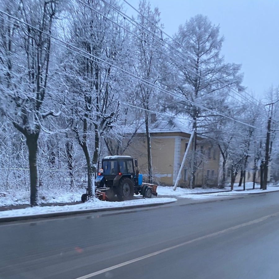 Пока многие любовались снежком из окна, наша техника уже вышла на улицы. Спец.техника вышла на подметание тротуаров и обработку проезжих частей от гололеда.