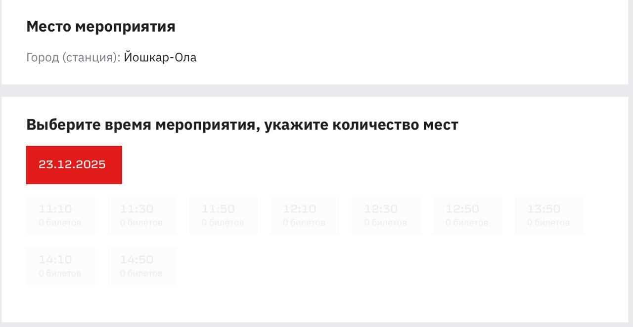 на популярные программы «Посещение передвижной резиденции» и «Кукольный театр» билетов уже не осталось — на сайте появилась отметка «Все билеты проданы».