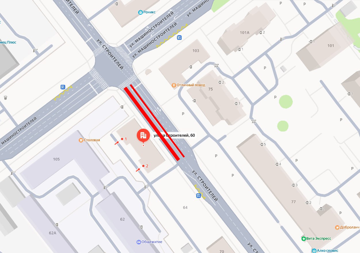 Как сообщает администрация города, ограничение движения транспорта введут по одной полосе нечетной и двум полосам четной стороны улицы Строителей в районе дома №60.