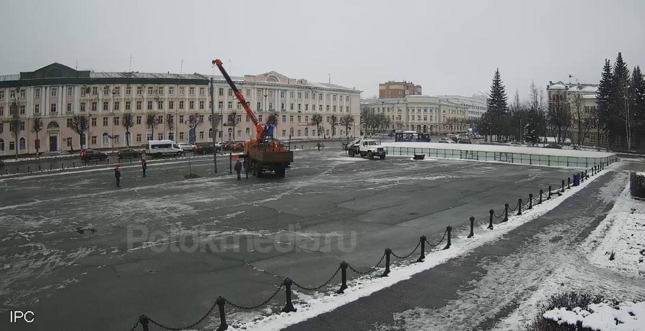 Главную елку Марий Эл в Йошкар-Оле начали устанавливать в прошлом году 2 декабря. В тот день на улице практически не было снега.