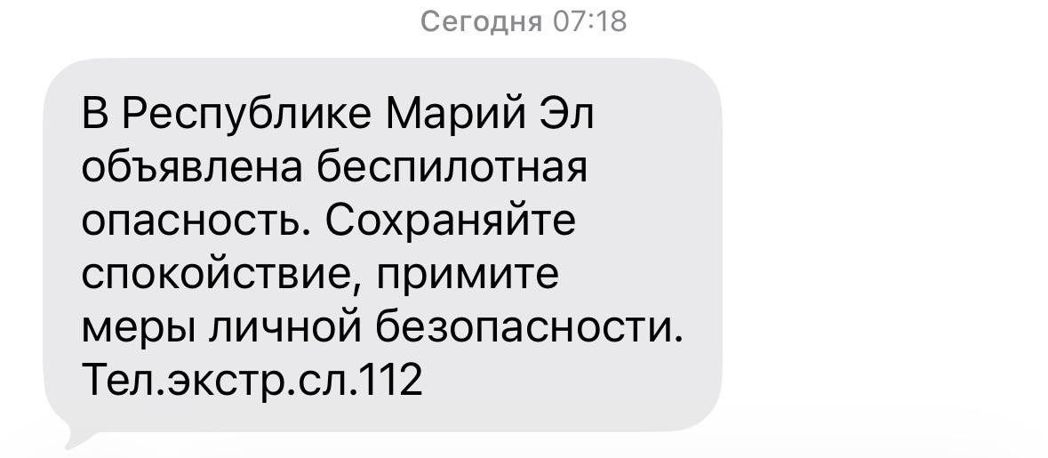 В Марий Эл с 07:18 объявлена беспилотная опасность, сообщает РСЧС