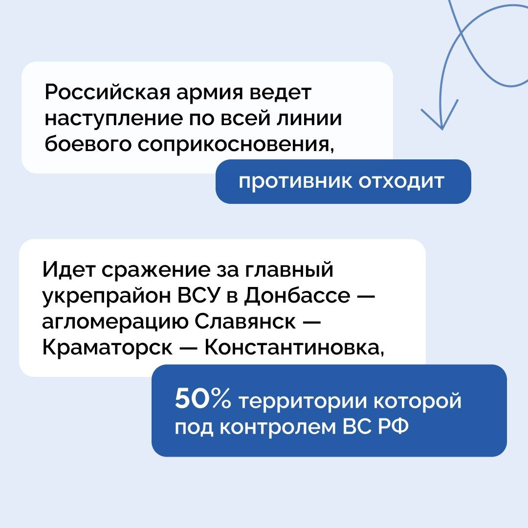 Владимир Путин начал Прямую линию с оценки ситуации на фронте. По словам Верховного Главнокомандующего, российская армия владеет инициативой и наступает по всем направлениям.