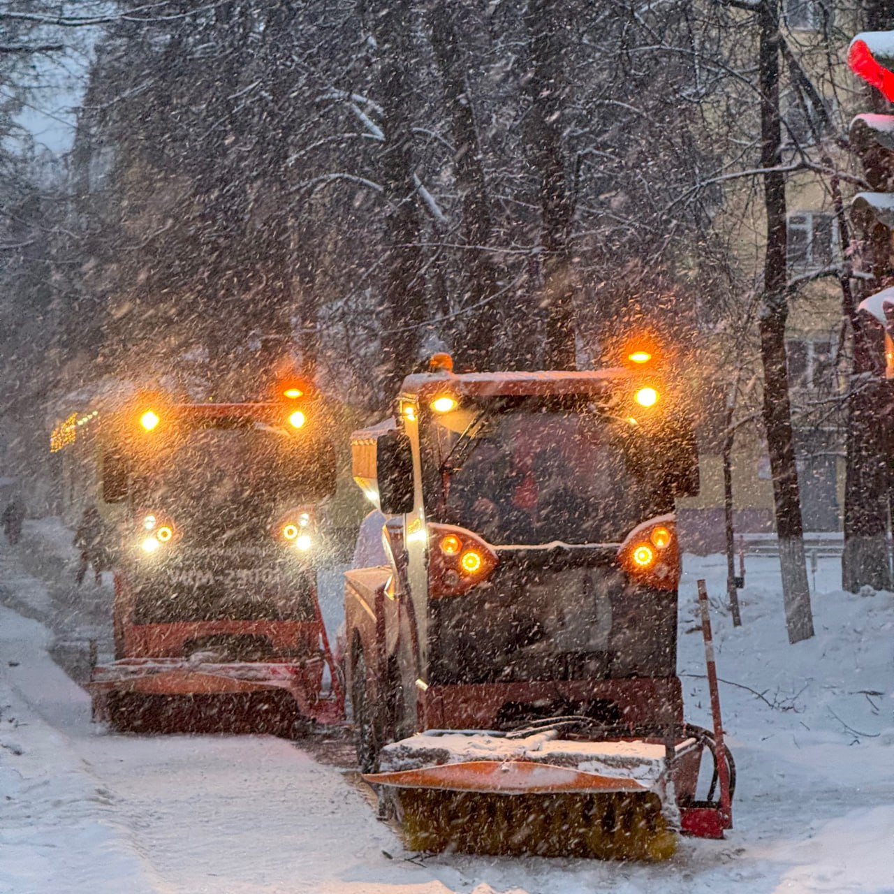 Коммунальщики АО «Город» работают в две смены. Ночью на расчистку вышло 30 машин, днём — около 40 единиц техники. Они вывозят снег, подметают дороги и обрабатывают их противогололёдными материалами.