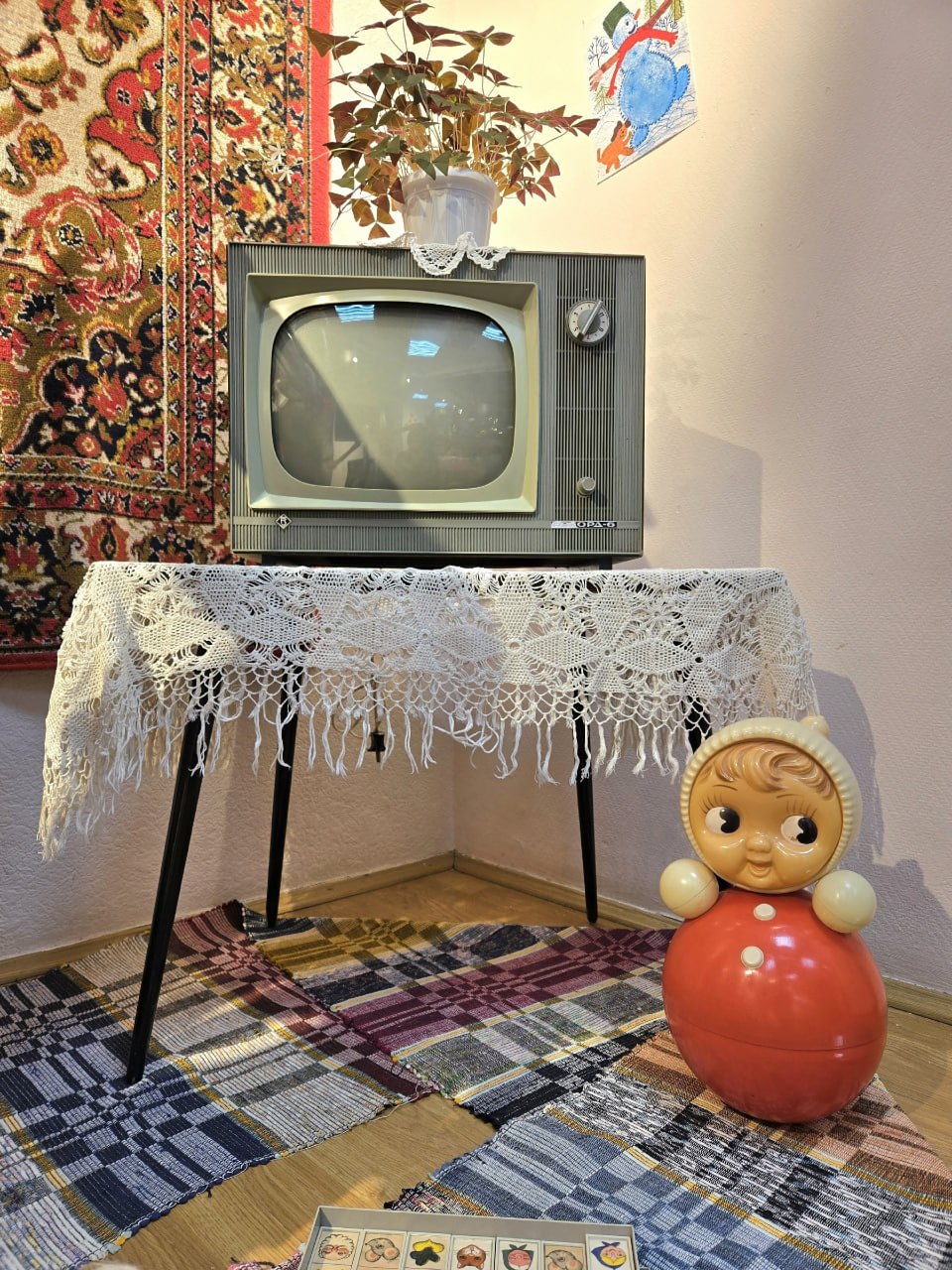 Здесь вы увидите ёлочные игрушки, старый телевизор, лыжи и санки, простые бумажные украшения, тёплые пальтишки и шапочки. Это выставка о времени, научившем нас радоваться простому. О мире, где чудеса были рядом, и о нас – маленьких и искренних.