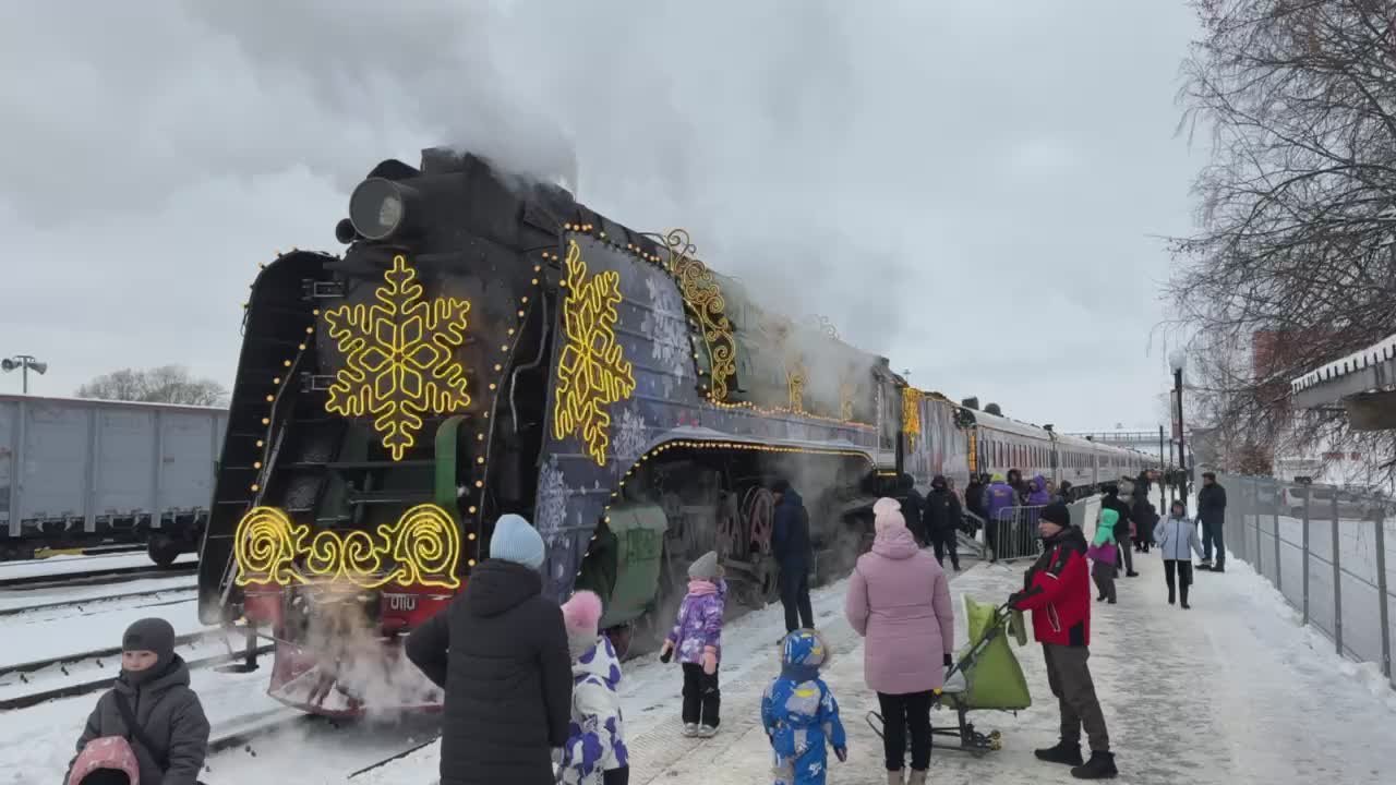 Поезд Деда Мороза в Йошкар-Ола собрал вокруг себя десятки людей, желающих сфотографироваться. Место стало центром притяжения для тех, кто хочет стать ближе к празднику