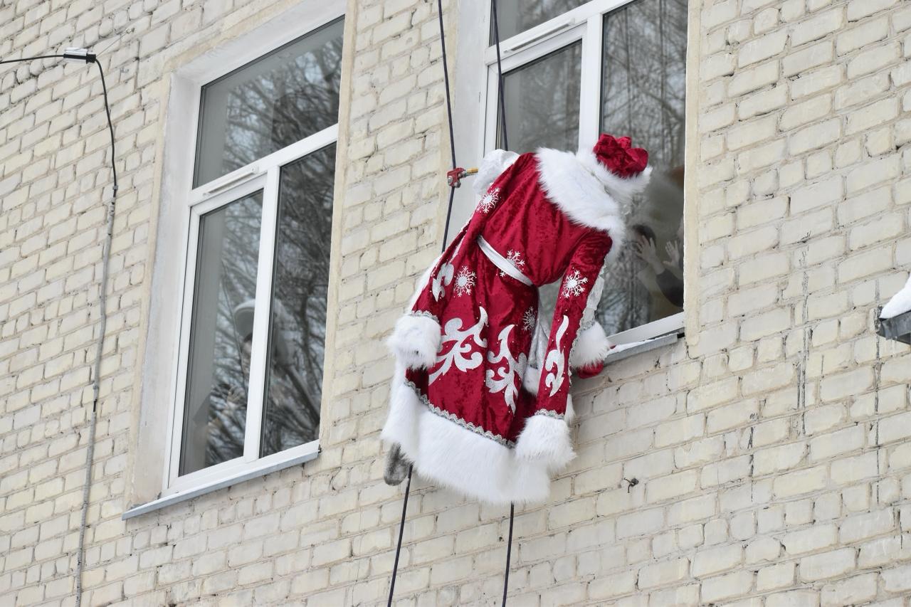 Пока одни Деды Морозы и Снегурочки танцевали под окнами, другие поднимались на крышу инфекционного отделения, чтобы лично передать подарки.