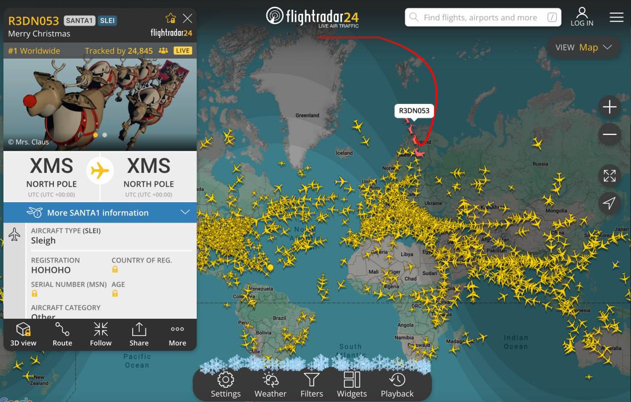 Сейчас путь волшебного персонажа пролегает над Финляндией и Швецией, а следить за его полетом можно на сервисе Flightradar24, написав в поисковой строке SANTA1, HOHOHO или R3DNO53.