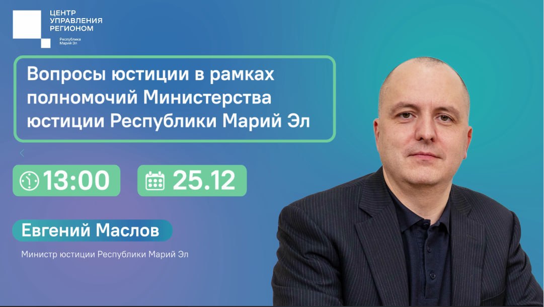 Министр юстиции Марий Эл ответит на вопросы жителей на прямом эфире