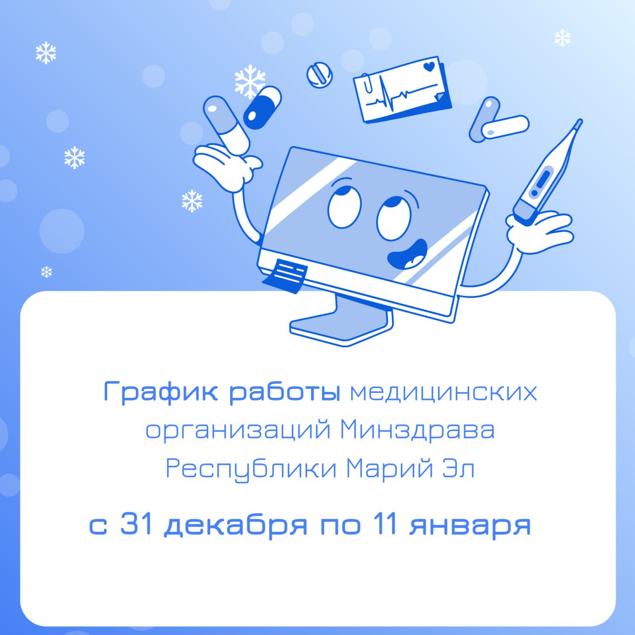 Подготовили график работы медицинских учреждений Минздрава Марий Эл с 31 декабря по 11 января.