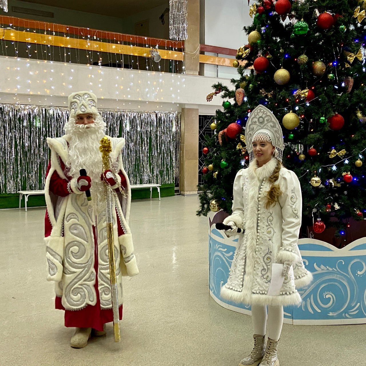 Дед Мороз со Снегурочкой наполнили атмосферу праздничным настроениеми от всей души пожелали ребятам счастья, крепкого здоровья и отличных успехов в учебе!