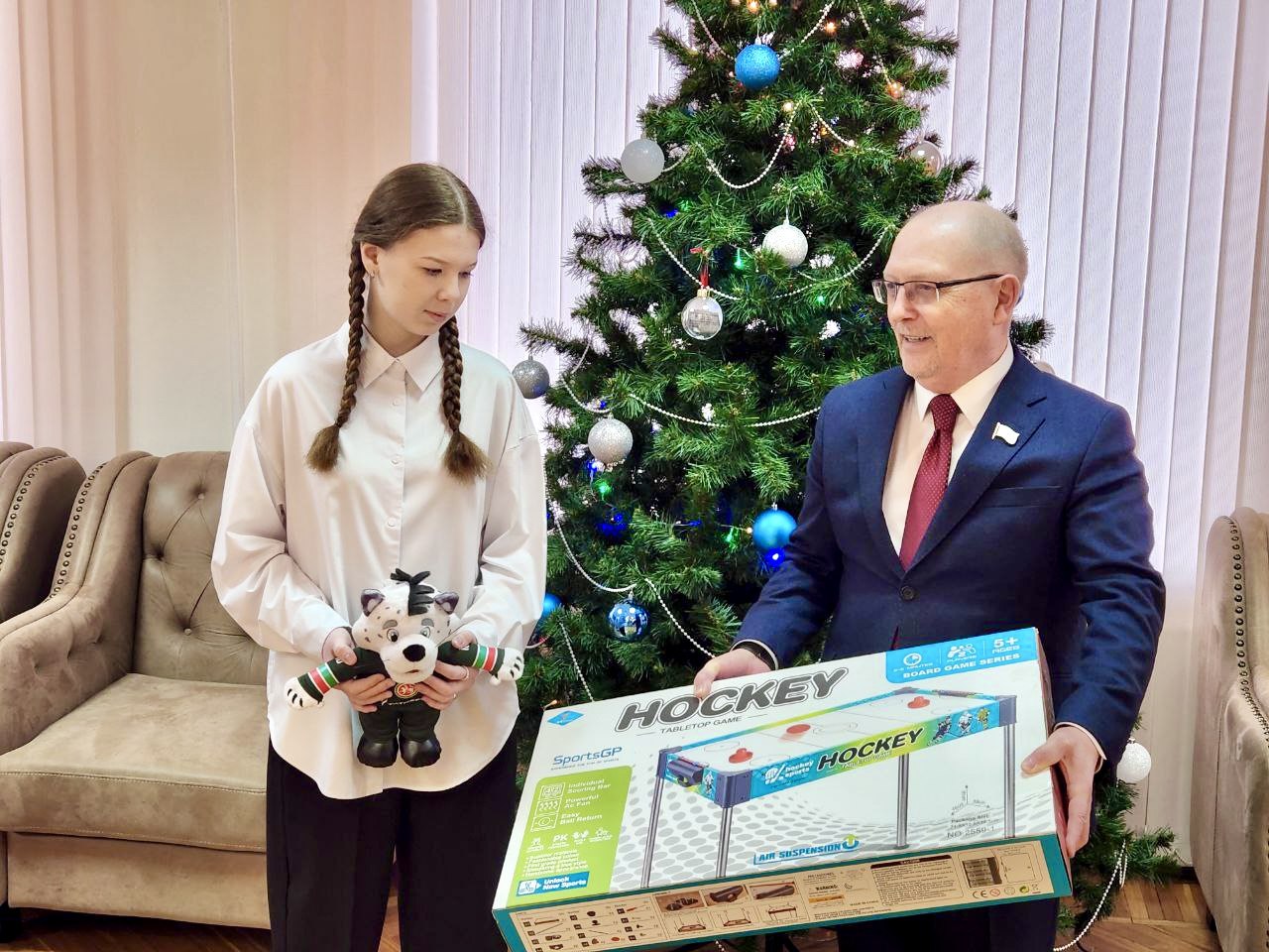 Председатель Госсобрания Марий Эл Михаил Васютин исполнил новогоднее желание 13-летней Ани Александровой, приняв участие в акции «Елка желаний» и подарив девушке аэрохоккей, о котором она мечтала.