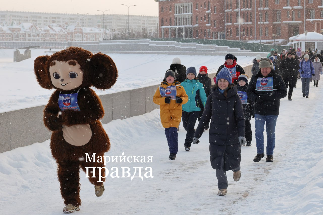 Кульминацией стал новогодний забег, после которого желающие сделали памятные фото с Чебурашкой.