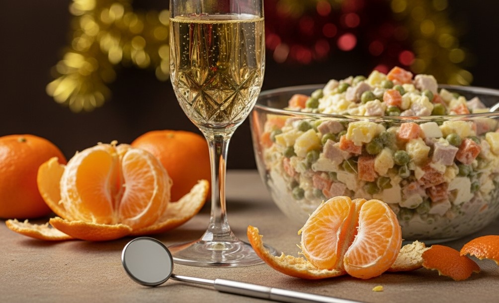 С приходом нового года мы готовимся к весёлым застольям с традиционным оливье и пузырьками шампанского. Однако часто праздник может омрачиться неожиданной зубной болью, которая появляется, даже если вы не ели ничего твёрдого. Почему это происходит? Мастера стоматологии объясняют, что такие знакомые новогодние продукты, как мандарины и салат оливье, могут быть виновниками дискомфорта, пишет канал "Diginomy | Политика, наука и жизнь простыми словами".