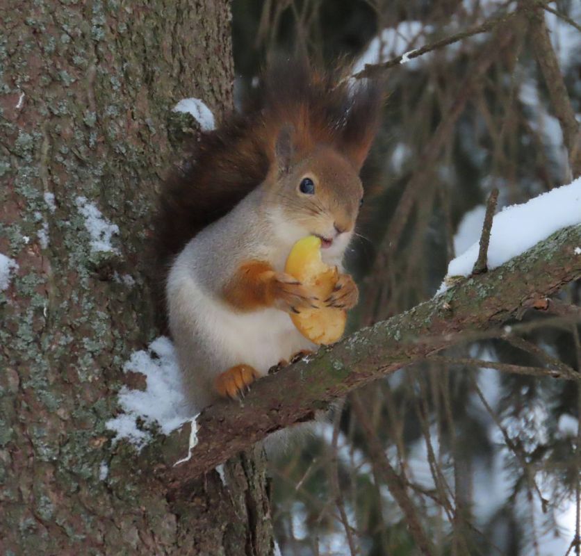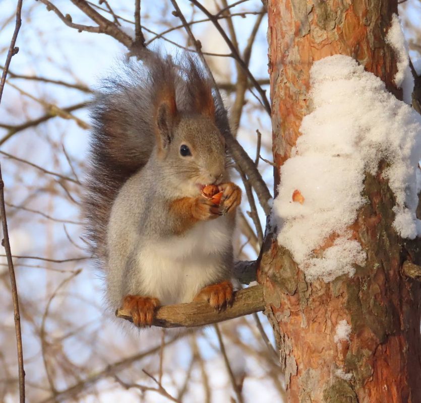 Не забывайте подкармливать наших пернатых обитателей и пополняйте их кормушки. Не забудьте заглянуть в Сосновую рощу и Центральный парк культуры и отдыха и побаловать белочек орешками. Можно оставить орешки в кормушках или на пенёчках - они найдут