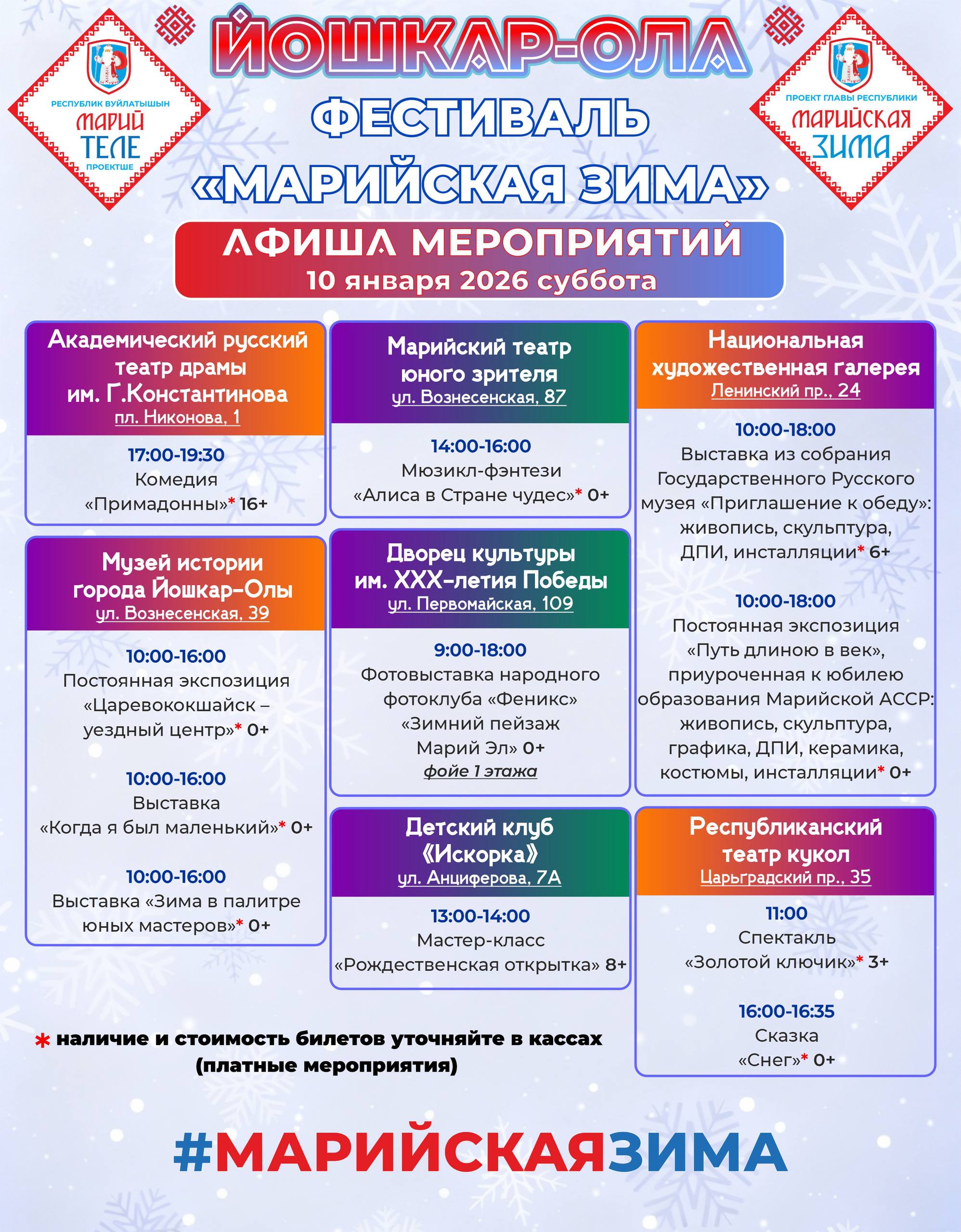 Фестиваль "Марийская зима" продолжает радовать жителей и гостей Йошкар-Олы яркими событиями и увлекательной программой! Максимальное разнообразие мероприятий позволяет каждому найти что-то по душе.