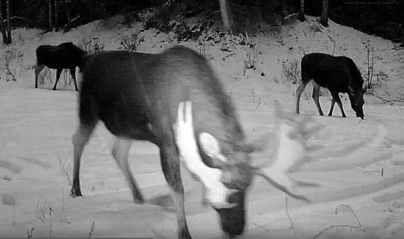 В фотоловушку Национального парка «Марий Чодра» попала лосиная семья. Кадры были сделаны ещё в декабре.