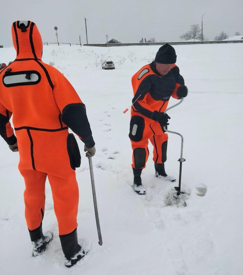 Средняя толщина покрытия на воде составляет 19 сантиметров: 10 см плотного слоя и 9 см рыхлого, пористого, под которым находится вода, сообщили в администрации города.