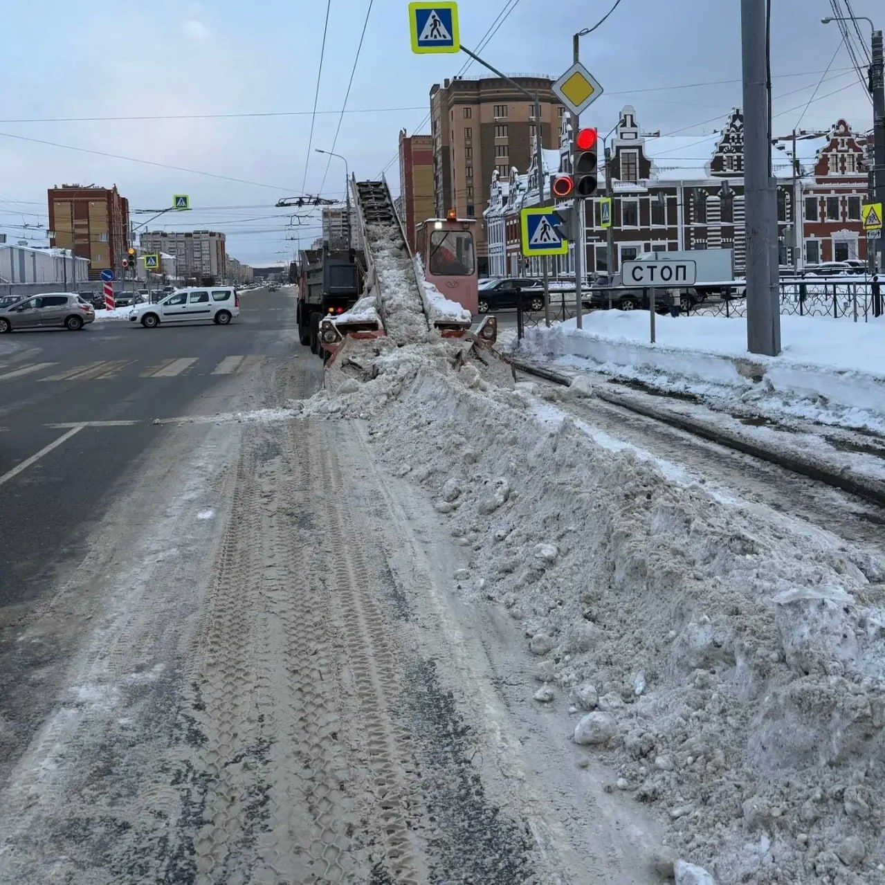 Городские службы всю ночь активно расчищали городские дороги от снега