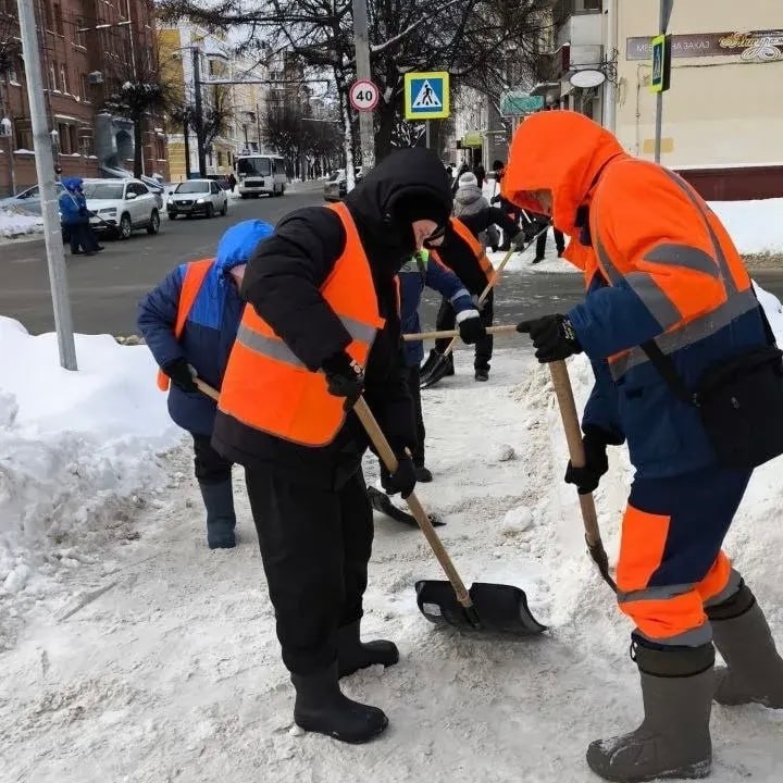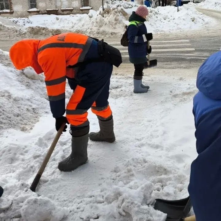 Бригады ручного труда занимаются уборкой наледи и снега вручную на пешеходных переходах, лестницах и мостах. За весь сезон на обработку дорог и тротуаров от скользкости использовали около 9000 тонн пескосоляной смеси.