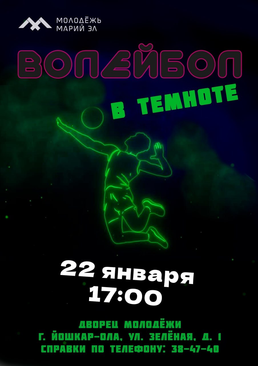 22 января в Дворце молодёжи пройдёт эксклюзивное событие «Волейбол в темноте». Мероприятие приурочено ко Дню госслужащего и Дню студента.