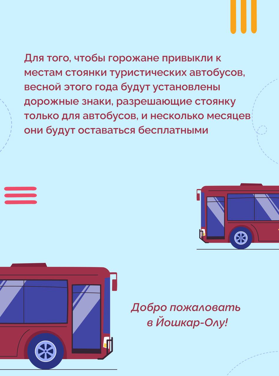 Турпоток в Йошкар-Олу с каждым годом растет. Чтобы большие автобусы не создавали пробок и хаотично не занимали дороги, мы приступаем к упорядочиванию их стоянки. В городе совместно с представителями турбизнеса определено 5 ключевых локаций, где парковка станет платной и цифровой.