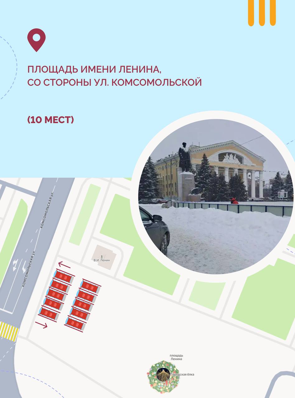 2. Площадь имени Ленина (со стороны ул. Комсомольской): 10 мест.
