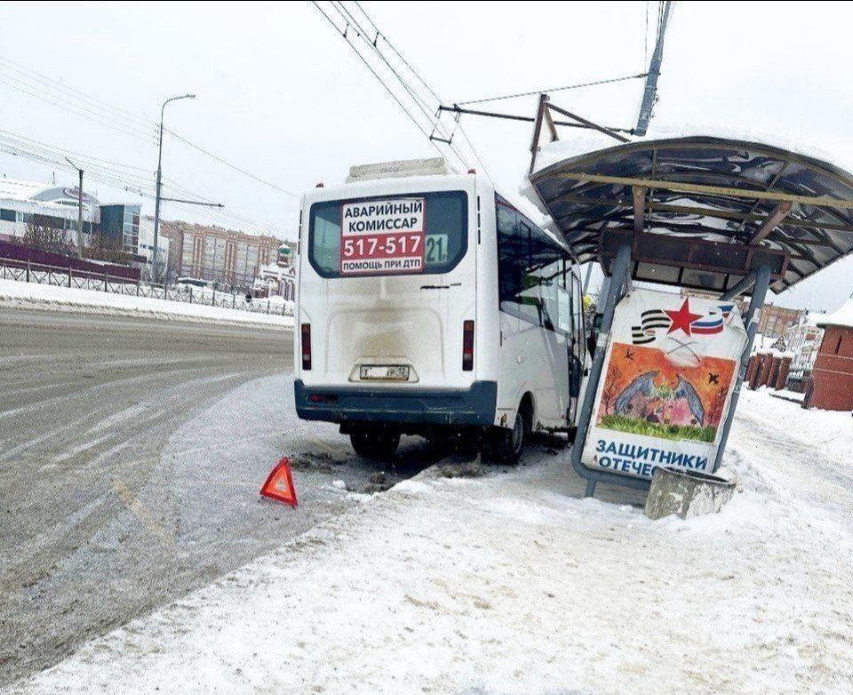 В Йошкар-Оле микроавтобус, следующий по маршруту 21К наехал на остановку «Патриаршая площадь» на Царьградском проспекте.