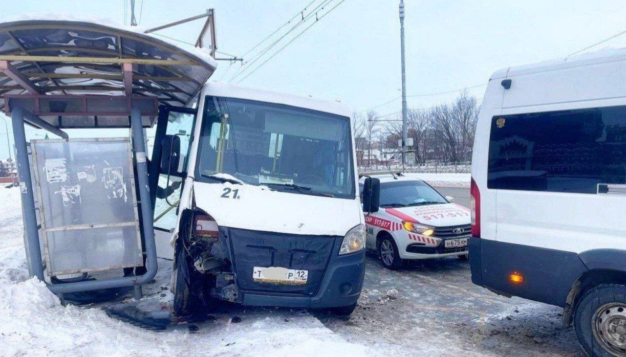 20 января около 8:50, на Царьградском проспекте в Йошкар-Оле произошло ДТП с участием пассажирского автобуса. По предварительной информации, водитель маршрутки не справился с управлением и совершил наезд на остановочный павильон у дома №37.