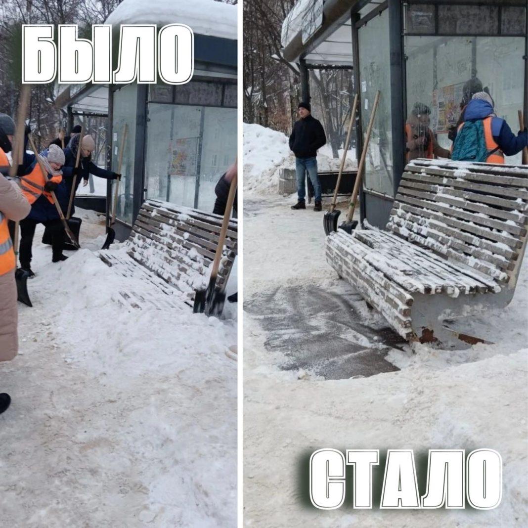 Помимо рутинных работ по зимней уборке, таких как расчистка выходов на пешеходные переходы и лестничные спуски, специалисты ручного труда ведут очистку остановочных павильонов от надписей, оставленных вандалами.