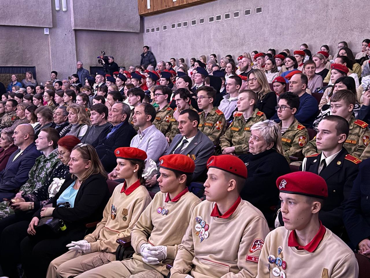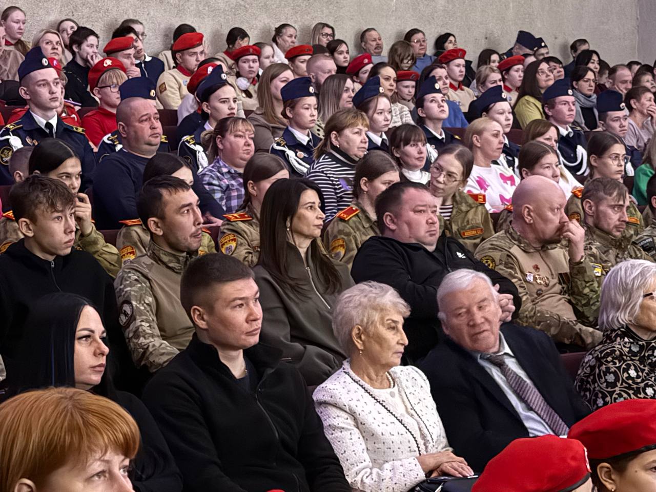 В зале собрались те, кто не остается равнодушным к истории и будущему Отечества: юнармейцы, воспитанники патриотических объединений, ветераны и члены семей участников СВО.
