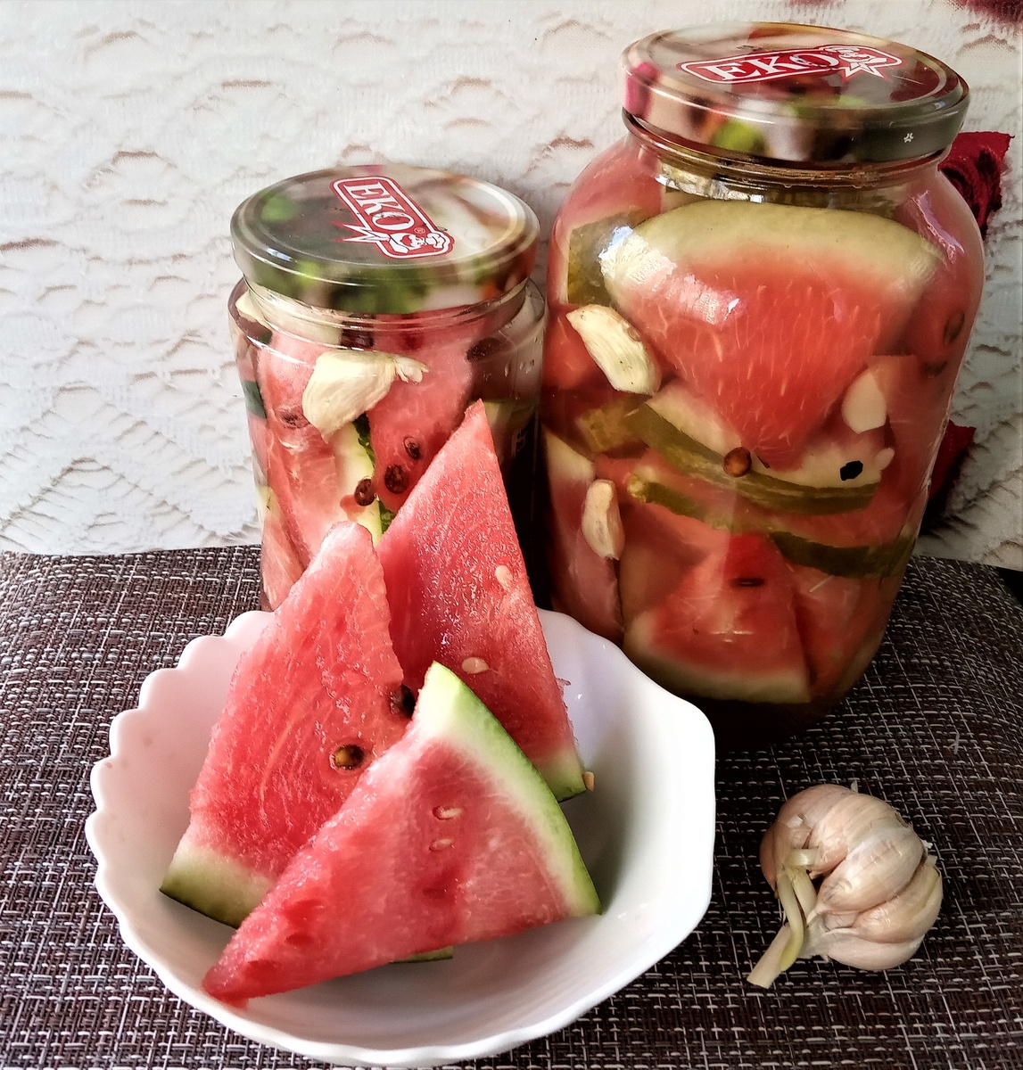 Это простой и интересный способ сохранить осеннее наслаждение арбузом на зиму. Если попался недозрелый фрукт или вы столкнулись с аллергией на кислоты — этот рецепт точно оставит вам положительные эмоции и обеспечит сытные заготовки на зиму!