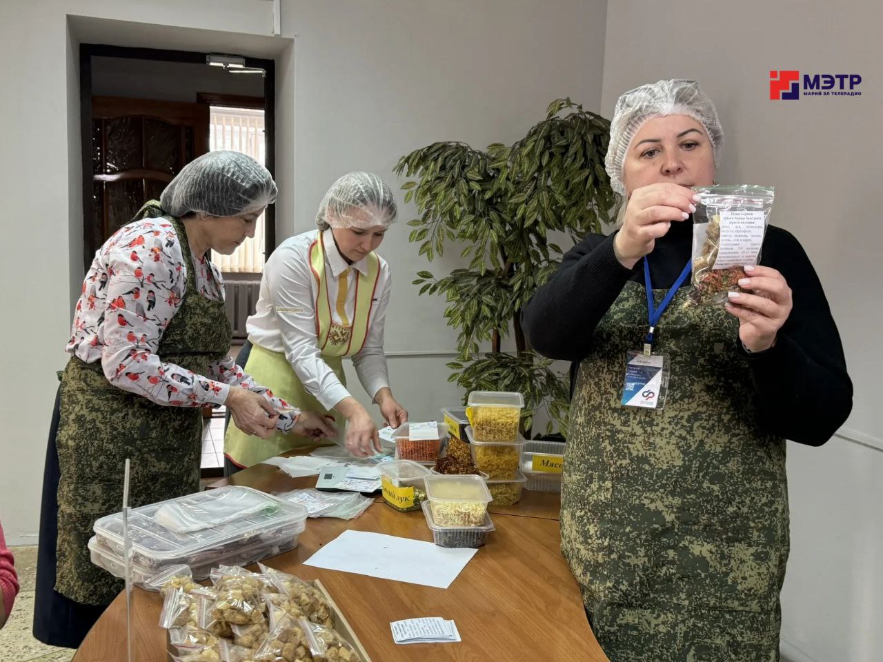 Добровольцы организовали сушку овощей для приготовления сухих супов. За один день им удается расфасовать около 200 индивидуальных пакетиков, в которые входят сухой борщ и сухари.