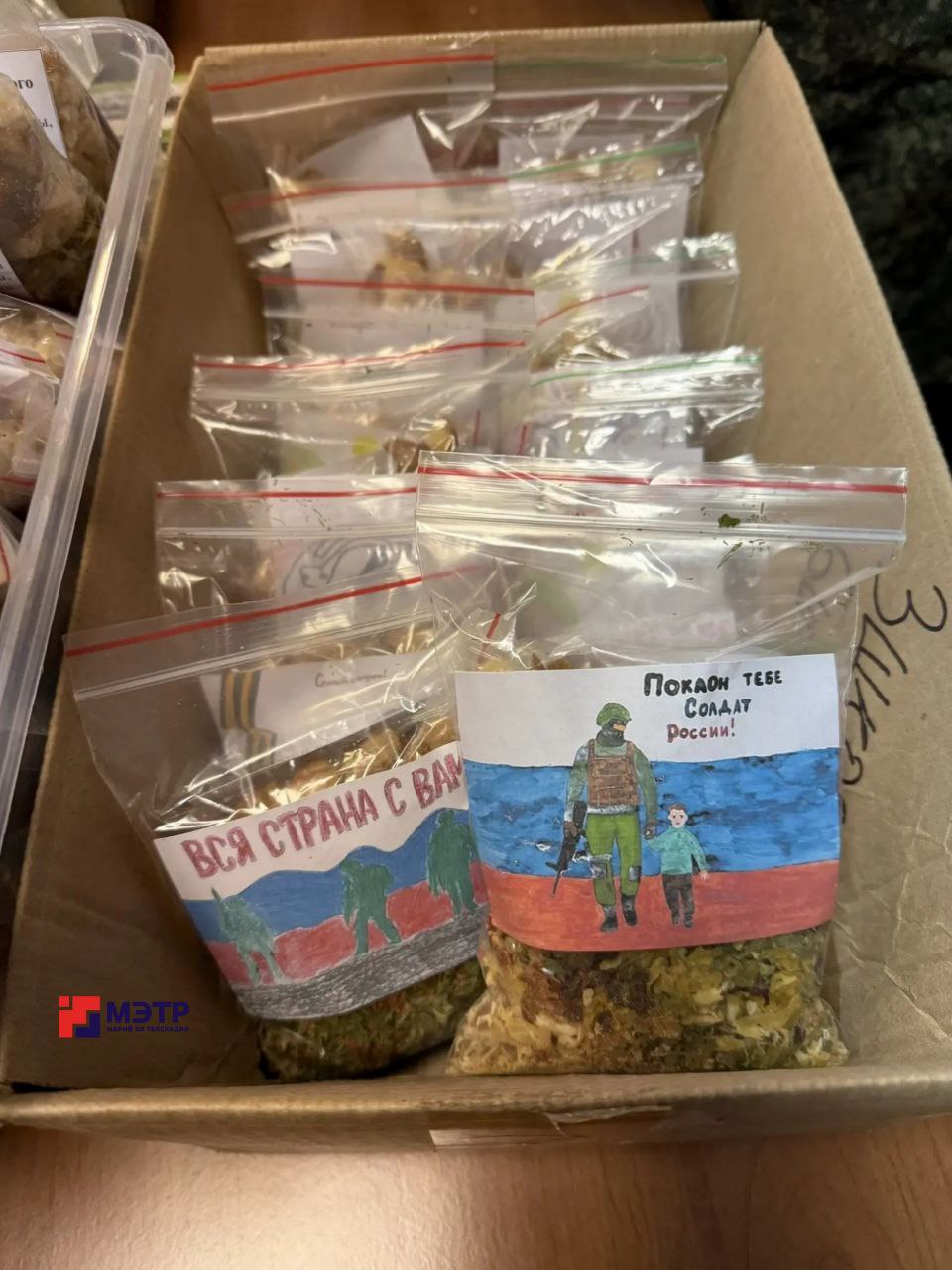 Собранная гуманитарная помощь в ближайшее время отправится в зону проведения специальной военной операции. Небольшой формат упаковки специально выбран для удобства доставки беспилотниками непосредственно в окопы на передовой.