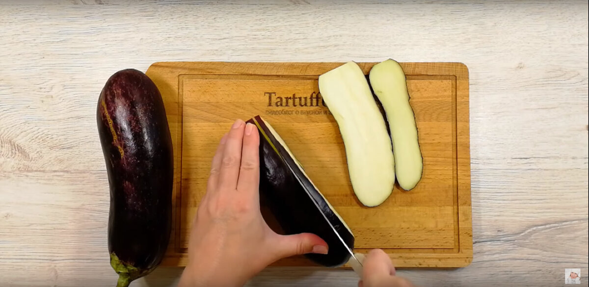 Для начала следует нарезать баклажаны тонкими кружочками. Они не только придадут блюду красивый вид, но и позволят им лучше пропитаться начинкой.
