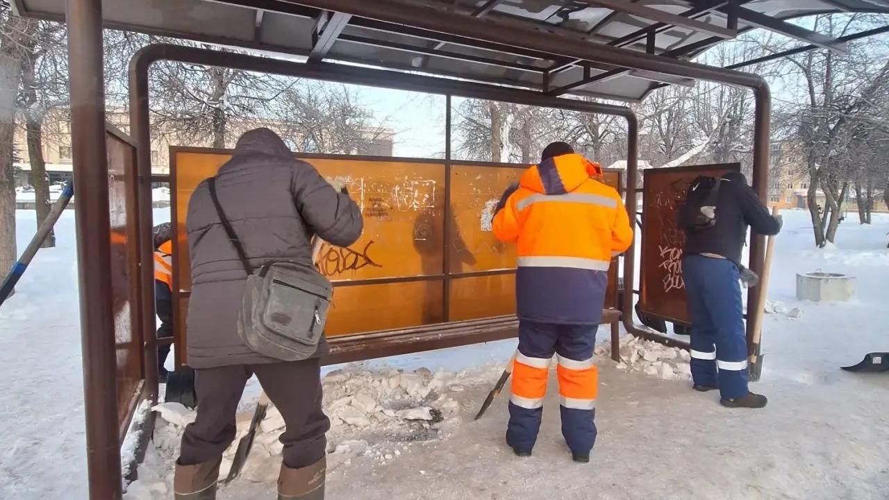 На остановках Йошкар-Олы кипят работы. Работники коммунального предприятия «Город» расчищает их от снега и завалов.