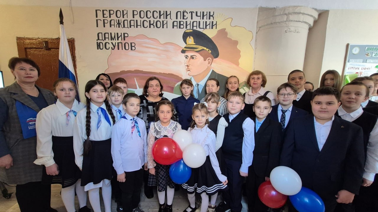 В Тат-Китнинской основной школе Мари-Турекского района Марий Эл открыли мурал, посвященный Герою России, летчику гражданской авиации Дамиру Юсупову.